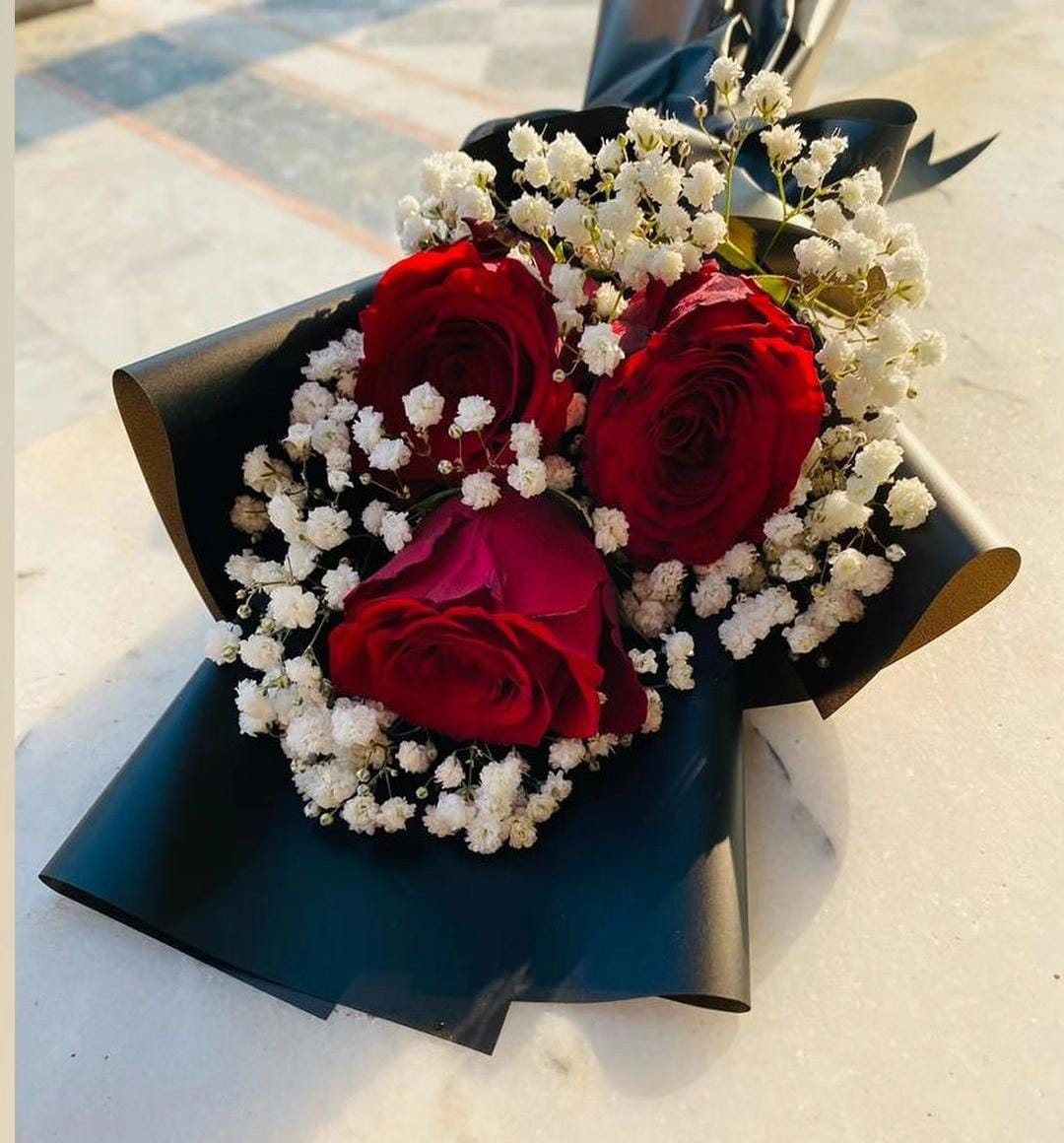 Express love with Royal Red Roses and delicate baby’s breath. A luxurious hand-tied bouquet, perfect for anniversaries, birthdays & special moments.